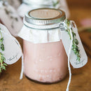 Charm your guests with this adorable small mason jar favor. Featuring an exclusive message that reads "Love Perfect Mason," this mini mason jar will look right at home at any rustic- or country-themed wedding. You can make your own extra-special mason jar wedding favors with a minimum order of a set of six mini mason jars, including custom candies, bath salts, baking mixes and more. Our miniature mason jars feature clear glass and a silver-colored tin lid for that classic look and are cheap enough for even the most budget-oriented brides. You'll enjoy bulk prices (the more you order, the more you save) and can even complete your order with custom stickers and tags for a fun finish.