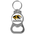 Hate searching for a bottle opener, get our Missouri Tigers bottle opener key chain and never have to search again! The high polish key chain features a bright team emblem.Officially licensed College product Licensee: Siskiyou Buckle. High polish chrome finish. Bottle opener feature. Standard split ring . Missouri Tigers domed emblem
