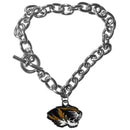 Our classic single charm bracelet is a great way to show off your team pride! The 7.5 inch large link chain features a high polish Missouri Tigers charm and features a toggle clasp which makes it super easy to take on and off.Officially licensed College product Licensee: Siskiyou Buckle. Bracelet is 7.5 inches. Easy toggle style clasp. Large link style chain. Missouri Tigers charm with enameled team colors