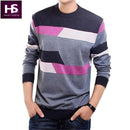 Men Rounded Neck Sweater / Wool-Cashmere Blend Pullover For Men