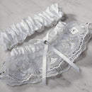 This chic and elegant wedding garter set is made of satin, trimmed with crystal-studded intricate lace, combining the prestige of royalty in this sophisticated, regal set.