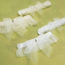 Soft organza trim and a large organza bow studded with crystal accents feature in this enchanting wedding garter set. The organza detail is mirrored in a smaller scale on the accompanying toss garter.