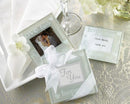 Spread your good wishes and capture the emotions of the day in classic pearlized glass. Our "Good Wishes" coasters are among our most popular wedding favors, and you can easily see why. With good wishes like love, joy, hope, bliss, faith and forever surrounding the frame, your guests will receive a heartfelt "thank you". Features and facts:Pearlized glass photo coasters include "For You" insert which can be replaced with a photo or messageClear display gift box is tied with a white-organza ribbon and bowCoasters measure approximately 3 1/2" square and fit photos approximately 1 3/4" x 2"Gift presentation measures 3 3/4" square
