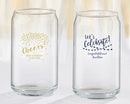 With a message of "Cheers!" or "Let's Celebrate!" our Personalized 16 oz. Can Glass from the Party Time line get your guests in the mood for a party! A design of your choice graces the front of each glass, as the can shape provides a great sip of any beverage you love. For parties of all sorts, this is a favor that gets everyone ready to celebrate!Features and facts:Clear, can shaped glass holds 16 oz. and measures 5.3" h and 2.9" in diameter Available personalized with your names and event details in Party Time designsDue to personalization, minimum order of 36 required. Please allow up to 7 business days for processing. A $35 setup fee is added to each personalization request for this item for creation of the artwork and design plates. Custom design, personalization or color variations within the same order may incur separate setup fees.Though we try to package our glassware very carefully, we are unable to replace any glasses broken in transit. Please be sure to order additional pieces to cover any breakage or extra guests.Hand Wash RecommendedOnly available for delivery in US and Canada