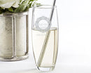 You don't need a stem to make a great toast, and These Romantic Garden Personalized Stemless Champagne Glass is just the vessel to have the toast of a lifetime! At Romantic Garden weddings, or garden bridal showers, our Personalized Stemless Champagne Glasses make gorgeous and memorable personalized wedding favors for all of your guests, and they can be used during the event as well as for years back home. With your choice of personalization design, you can really place a piece of yourselves in the hands of all those you're so grateful for!Features and facts:Clear champagne glass is presented without the stem and holds 9 oz.Can be personalized with a lace design featuring your initials and event date, or a floral design featuring Mr. Mrs. and dateMeasures 5.5" h x 2" in diameterDue to personalization, there is a minimum order of 36 on this item. A $35 setup fee is added to each personalization request for this item for creation of the artwork and design plates. Custom design, personalization or color variations within the same order may incur separate setup feesThough we try to package our glassware very carefully, we are unable to replace any glasses broken in transit. Please be sure to order additional pieces to cover any breakage or extra guests. Hand Wash RecommendedOnly available for delivery in US and Canada