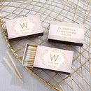 These Personalized Black Matchboxes in a Modern Romance theme create useful wedding favors that can be given out at the bar or along with candles. These personalized wedding matches come in sets of 50 to suit events of all sizes, and are topped with a personalized Modern Romance sticker showing your names and event date. These thoughtful wedding souvenirs come with approximately 20 match sticks in each box. Features and facts: Modern Romance sticker designs on black matchboxesEach matchbox contains approximately 20 match sticksMeasures 2.25" l x 1.38" w x 0.37" d Sold in sets of 50Some assembly requiredDue to personalization, please allow 3-5 business days for processing