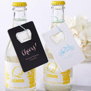 Add friends and family, mix well and you have a day you'll always remember. And they will too when your guests open their next cold one in style__your style. Customize these bottle openers for terrific take-home treats. Features and facts: Available in white or blackMeasures 2.2"w x 3.4"hSold as minimum of 36. Multiple personalization options available