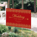 I saw the sign, and it opened up my eyes to beautiful and functional Indian wedding decor! These Personalized Directional Sign can be placed anywhere at your special event, to give your guests a little extra Indian Jewel themed help when knowing where to go. Features and Facts: Personalized sign in two Indian Jewel designs - ruby red and teal. Sign measures approximately 12" h x 18" w. Includes mounting tape and wire stand. Wire stand measures approximately 30" h x 8.1" w. Some assembly required. Assembly directions included with shipped purchase. Minimum order of 1 required for personalization. Due to personalization, please allow 3-5 business days for processing.
