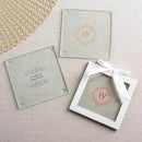 As wedding guest gifts, These personalized coaster favors make beautiful display pieces as well as useful coasters! In a Modern Romance design, our Personalized Glass Coasters may be customized with your names and wedding date. With 4 padded feet, the coasters may be used to protect table tops of all kinds!Features and facts:One personalized 3.5" square glass coasterPadded feet for surface protectionOptional elegant window sleeve with white border and white satin ribbon (assembly required)Optional gift sleeve measures 3.75" squareSold in set of 12; minimum of 3 sets (36) required with personalizationDue to personalization, please allow up to 7 business days for processing. A $35 setup fee is added to each personalization request for this item for creation of the artwork and design plates. Custom design, personalization or color variations within the same order may incur separate setup feesThough we try to package our glassware very carefully, we are unable to replace any glasses broken in transit. Please be sure to order additional pieces to cover any breakage or extra guests. Hand Wash RecommendedOnly available for delivery in the US and Canada