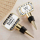 Stop all your bottles in style with These Personalized Gold Bottle Stopper with Epoxy Dome! In a Modern Classic design, these favors can be used for weddings, to commemorate anniversary parties, birthday celebrations, and so much more. These personalized bottle stopper favors keep your custom Modern Classic sticker safe under a sturdy epoxy dome. Features and facts: Metal bottle stopper with gold finish, epoxy dome for personalization, and a rubber seal to keep air out and flavor inOpener measures 4.5" h x 2.25" wMinimum order of 24Due to personalization, please allow 3-5 business days for processing Some assembly required