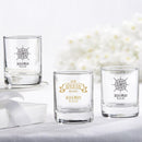 These customized shot glasses are the ideal party-favor vessel for all adventurous couples! Created with the travel-conscious in mind, these glasses can also serve as votive holders and are available in two worldly designs printed right on the glass. Give them away as parting gifts to wedding guests or use them in your table decor!Features and facts:Clear shot glass measures 2.5" high and 2" in diameterMinimum order of 36 required for personalizationOnly available for delivery in US and CanadaA $35 setup fee is added to each personalization request for this item for creation of the artwork and design plates. Custom design, personalization or color variations within the same order may incur separate setup feesThough we try to package our glassware very carefully, we are unable to replace any glasses broken in transit. Please be sure to order additional pieces to cover any breakage or extra guests. Hand Wash Recommended.