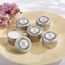 Jetset in a worldly fashion with these personalized travel candle tins! Created byKate Aspen, these personalized party favors feature, in true bon-voyagefashion, a compass dial and a vintage decor map for a touch of old-fashionedvacationing. They're perfect for a travel-themed wedding, bridal shower oranyone who loves a whimsical adventure. Features and facts: Round candle tin with sculpted lid and white, light vanilla-scented waxcandleMinimum of 24 required for personalizationCandle tin measures approximately 1.13" h x 2" in diameter