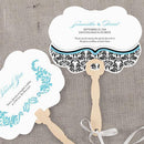 This personalized Love Bird Damask Hand Fan has an attractive and unique die-cut shape and comes complete with an Eco-friendly wooden handle. Treat your guests with this elegant and useful favor.