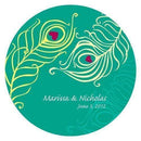 Peacock feathers have long since been a symbol of courtship. Carry on the tradition with this peacock feather stationery customized in your very own wedding colors.Add instant personality to small tins, favor containers or even envelopes with this delightful sticker. Available in two sizes for added flexibility. material - glossy vinyl adhesive imperial - 2" dia metric - 5cm dia
