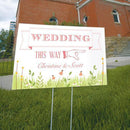 Help guests find their way. Use our Homespun Charm Wedding Directional Sign to mark the route to your Wedding and/or Reception. Includes 2 posters, left and right facing, mounting board, and wire stand. (Some assembly required).