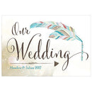 Help your guests find their way to your wedding or reception easily by placing these personalized, directional wedding signs along drivesways, entrance ways, paths and roads. This boho chic wedding sign features a gorgeous and colorful feather that will appeal to the free spirited brides and grooms.