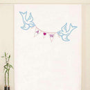 Photo booths are a fun accessory to any wedding reception. Line the back of it with these Birds with Love Pennant Personalized Backdrops, set up a camera, provide funny hats, moustaches and other props and watch your guests have a blast all night long! Mount the backdrop to a wall surface using "removable" poster tape available at most craft stores, or suspend from a wood dowel or light-weight curtain rod. Mounting supplies are not included with the backdrop.