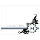 In the Lavish Monogram Stationery Collection the main point of focus is of course your monogram. However the unique pattern and color combinations accent the monogram and create a bold and stylish statement. The black and white option provides the feel of classic elegance. Whereas the colored options give you that additional flair. This Blank Note Card can be used in any number of ways to help develop your theme. Sold as a flat card. Recommended for use with laser printers. paper weight - 80 lbs material - smooth cover paper imperial - 4x3" H or 3x4" H metric - 10x7.6cm H or 7.6x10cm H