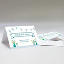 This vibrant and fresh Stationery Collection is sure to please. Playful, fun, and festive, the banners, flags, and wild flowers throughout this combine to evoke the mood of a refreshing garden party. Offered in three distinct color combinations this collection can harmonize with a plethora of decors. Suitable for any occasion from bridal parties to the big day and beyond, this beautiful folded Thank You Card even comes with an envelope. It is an elegant way to express to someone how much you appreciate them. Product Material: paper