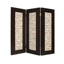 This 3 panel wood screen is all you need to carve out space in your room or anywhere around the home. Not only will this elegant piece give you the needed exclusivity but it will also add style and beauty to your decor. Featuring a unique square pearl pieces arranged in a charming rectangular pattern and framed by a solid wood structure with brown finish. Overall, our 3 panel screen is designed to fill your space with inspiring visual flair for many years to come. ' 3 panel screen ' Stunning rectangular pattern ' Finished on both sides ' Inlayed pearl shell design