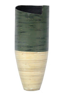 Tall Vase - 10'.25" X 10'.25" X 25" Distressed Green & Natural Bamboo Spun Bamboo Vase