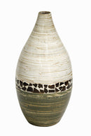 Tall Vase - 10" X 10" X 20" Distressed White And Green W/ Coconut Shell Bamboo Spun Bamboo Vase