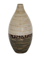 Tall Vase - 10" X 10" X 20" White And Gray W/ Coconut Shell Bamboo Spun Bamboo Vase