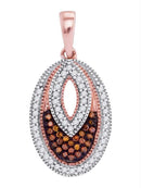 10kt Rose Gold Women's Round Red Color Enhanced Diamond Oval Pendant 1/5 Cttw