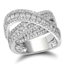 Description 10kt White Gold Women's Round Diamond Crossover Fashion Band Ring 2.00 Cttw Gemstone Details 2.00 Carats total weight Specifications 10kt White Gold Combined diamond weight of 2.00 carats total weight represents a range of 1.95 - 2.05 cts. t.w.