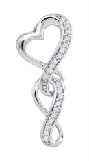 Description 10kt White Gold Women's Round Diamond Heart Infinity Pendant 1/20 Cttw Gemstone Details 1/20 Carats total weight Specifications 10kt White Gold Combined diamond weight of 1/20 carats total weight represents a range of 0.04 - 0.06 cts. t.w.
