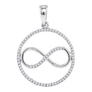 Description 10kt White Gold Women's Round Diamond Infinity Pendant 1/3 Cttw Gemstone Details 1/3 Carats total weight Specifications 10kt White Gold Combined diamond weight of 1/3 carats total weight represents a range of 0.30 - 0.36 cts. t.w.