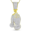 Description 10kt Yellow Gold Men's Round Diamond Praying Hands Faith Charm Pendant 1/2 Cttw Gemstone Details 1/2 Carats total weight Specifications 10kt Yellow Gold _Combined diamond weight of 1/2 carats total weight represents a range of 0.46 - 0.58 cts. t.w.