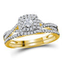 Description 10kt Yellow Gold Womens Round Diamond Halo Bridal Wedding Engagement Ring Band Set 1/2 Cttw Gemstone Details 1/2 Carats total weight --- 1/8 carat center solitaire Specifications 10kt Yellow Gold �Combined diamond weight of 1/2 carats total weight represents a range of 0.46 - 0.58 cts. t.w.