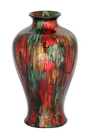 Large Floor Vase - 14'.5" X 14'.5" X 23'.5" Red, Brown And Green Ceramic Foiled & Lacquered Ceramic Floor Vase