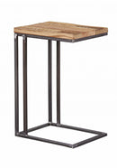 Every sofa's sidekick, end tables display decor, hold TV remotes and beverages, and round out seating ensembles in style. Brimming with industrial style, this end table constructed from hand forged Indiana steel base in a neutral gray finish and features a rectangular Oak tabletop in a natural Non-Toxic/Non-VOC finish. It showcases an eye-catching open C- shape and lends rustic appeal with its lightly distressed look.