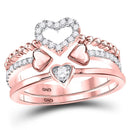 Description 14kt Rose Gold Womens Round Diamond 2-Piece Beaded Heart Band Ring Set 1/3 Cttw Gemstone Details 1/3 Carats total weight Specifications 14kt Rose Gold Combined diamond weight of 1/3 carats total weight represents a range of 0.30 - 0.36 cts. t.w.