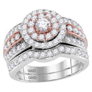 Description 14kt Two-tone Gold Womens Round Diamond Bridal Wedding Engagement Ring Band Set 1-1/2 Cttw Gemstone Details 1 & 1/2 Carats total weight --- 1/4 carat center solitaire Specifications 14kt Two-tone Gold �Combined diamond weight of 1 & 1/2 carats total weight represents a range of 1.46 - 1.58 cts. t.w.