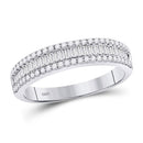 Description 14kt White Gold Womens Round Baguette Diamond Triple Row Band Ring 1/2 Cttw Gemstone Details 1/2 Carats total weight Specifications 14kt White Gold Combined diamond weight of 1/2 carats total weight represents a range of 0.46 - 0.57 cts. t.w.