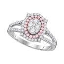 Description 14kt White Gold Womens Round Pink Diamond Oval Cluster Ring 3/4 Cttw Gemstone Details 3/4 Carats total weight Specifications 14kt White Gold All colored diamonds are treated to permanently alter their appearance. Combined diamond weight of 3/4 carats total weight represents a range of 0.71 - 0.82 cts. t.w.