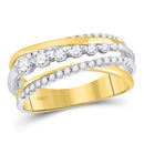 Description 14kt Yellow Gold Womens Round Diamond Triple Row Diagonal Band Ring 1/2 Cttw Gemstone Details 1/2 Carats total weight Specifications 14kt Yellow Gold Combined diamond weight of 1/2 carats total weight represents a range of 0.46 - 0.57 cts. t.w.