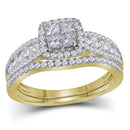 Description 14kt Yellow Gold Womens Princess Diamond Halo Bridal Wedding Engagement Ring Band Set 1.00 Cttw Gemstone Details 1.00 Carats total weight Specifications 14kt Yellow Gold �Combined diamond weight of 1.00 carats total weight represents a range of 0.95 - 1.05 cts. t.w.