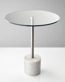 This End Table pairs sleek brushed steel with a chunky white marble base for a sophisticated, yet contemporary look. The beauty of this collection lies in the simplicity of its design, as well as the delicate details of the marble grain. A crisp glass table top finishes off the look with elegance. The approximate weight capacity for this table is about 10 lbs.