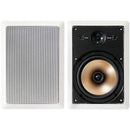 375W max, 175W RMS; 8inch poly graphite woofer; 2.5inch volume-adjustable poly midrange; 1inch volume-adjustable pivoting, titanium tweeter; Freq resp: 38Hz-25kHz; Imp: 8ohm ; Sensitivity: 90dB - 1W/1m; For stereo & whole-house music systems & home theaters; Self-resetting thermal cutoffs protect from overload; Gold-plated terminals; Paintable white grilles & frames; Includes mounting bracket; Speaker dim: 14inchH x 10.13inchW x 3.75inchD; Cutout dim: 12.5inchH x 8inchW; Extended 7-year warranty; Pair;