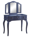 Makeup Mirror - 18" X 36" X 52" Tan Fabric Blue Gray Wood Mirror Upholstered (Seat) Vanity Set