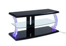 This TV stand comes in a transitional style that will surely be a cynosure of all eyes in the heart of your living room. Wow your guests and family with this stylish piece that features an exquisite white finish table top, glass shelves and a base with modern acrylic posts. Perfectly sculpted from selected wood and veneers and embellished with hand-painted accents in sleek finish. The magnificent piece is equipped with two open shelves for storage spaces and a frame accented by LED lighting. Add class and beauty to your space with this entertainment piece of furniture.