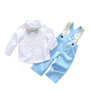 2 Pcs Boys Cotton White Shirts And Candy Color Jumpsuits