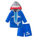 2 Pcs Boys Shark Pattern Hooded Swimsuit