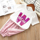 2 Pcs Girls Shine Sequins Design Short Sleeves Tees And Casual Pants