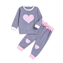2 Pcs Set Baby Girl Pink Heart Print Long Sleeves Tops And Pants