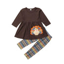 2 Pieces Set Girl Thanksgiving Day Turkey Print Long Sleeves Tops And Pants